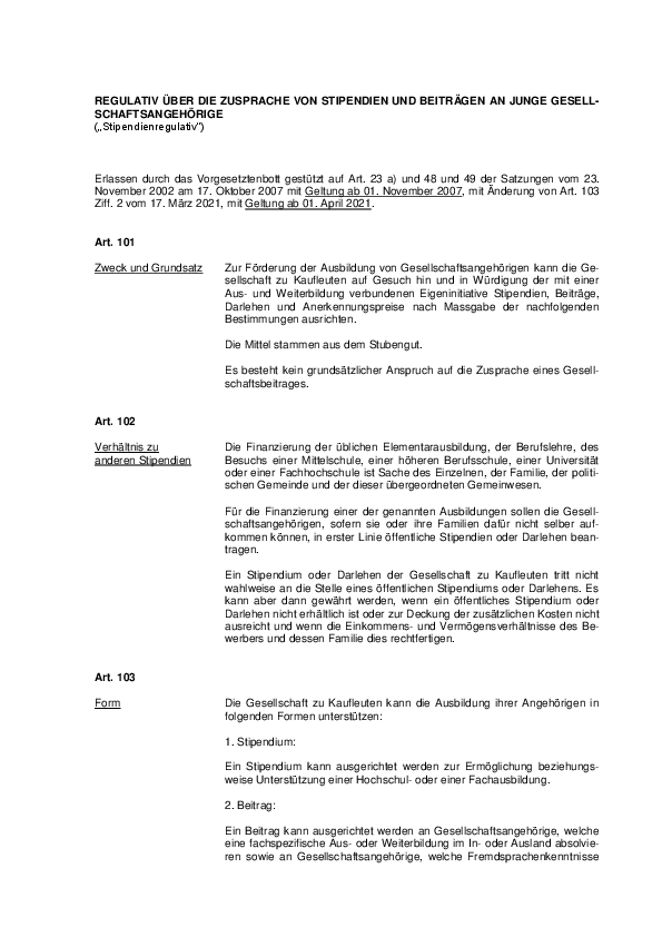 Hier findest du das Stipendienregulativ